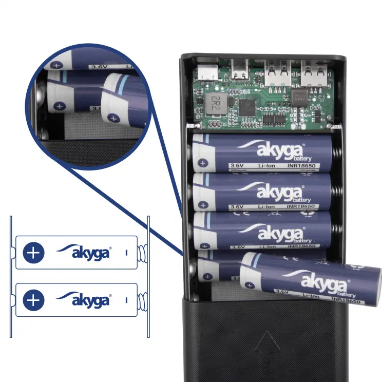Ha telefonja nem bírja ki egy egész napot, gyakran utazik vagy terepen dolgozik, akkor az Akyga® AK-BC-05 powerbank tok pont az Ön számára készült. Ez egy megbízható és hatékony energiaforrás, amelyet igényeihez igazíthat. A tok akár 12 db Li-ion 18650 cellát is befogad, így igazán nagy kapacitású powerbankot hozhat létre, amely ideális hosszú utazásokhoz, szabadtéri tevékenységekhez vagy vészhelyzetekhez.