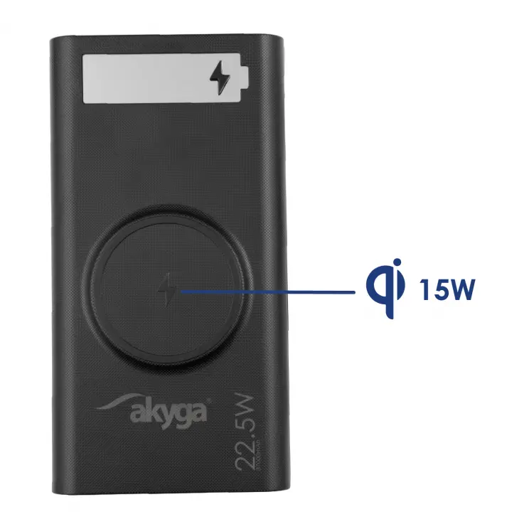 Az AK-BC-05 powerbank tok két eszköz egyidejű töltését támogatja, vezetékes és vezeték nélküli módon egyaránt. A tokban található egy USB-C PD port, USB-A VOOC technológiával, USB-A Quick Charge-szel, valamint egy 15 W-os Qi induktív töltő. Ez lehetővé teszi modern okostelefonok, fejhallgatók, navigációs eszközök vagy táblagépek gyors, kényelmes és kábelek nélküli töltését, amikor nincs rájuk szükség.